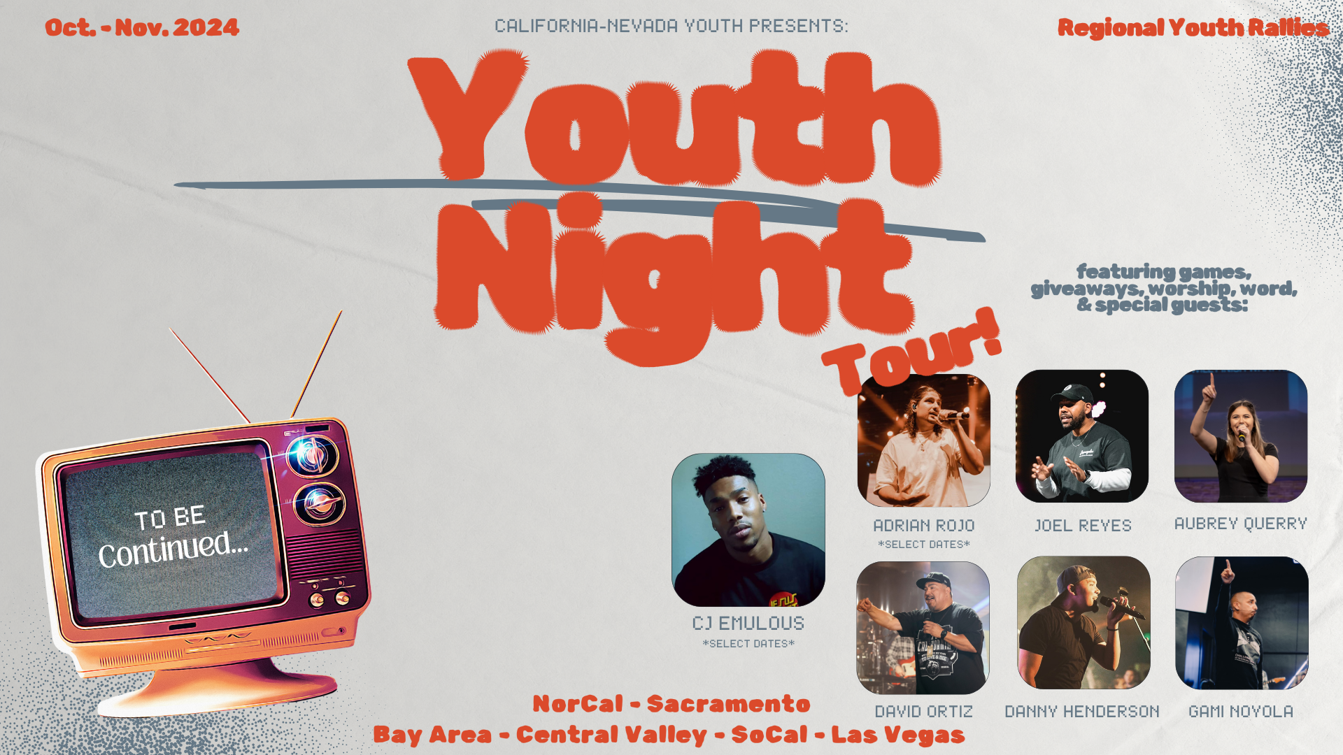 YTH Night! We are excited to continue to connect and build with the students from all over the region. This fall season, we will be having “YTH Night’s”, regional rallies throughout California and Nevada. YTH Night will be a one night, high energy service, including worship, word, after party, and so much more.
